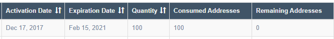 - If your license is fully consumed, the Remaining Addresses column will display 0. If your license is fully consumed, you can continue to scan existing IP addresses or switch hosts, but you can't add new addresses until you renew your license.